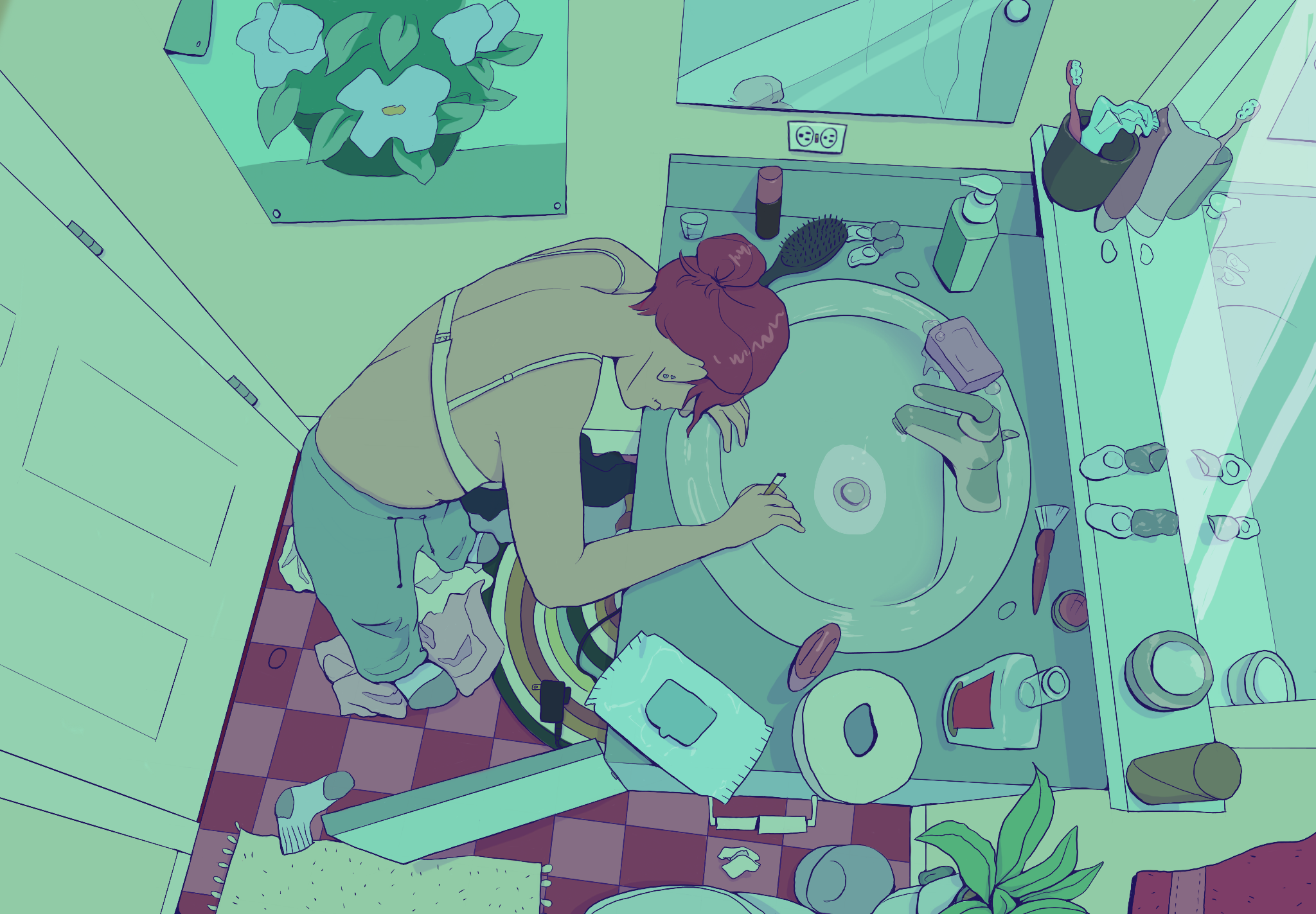 Apartment illustration (Traditionally inked, colored in Fresco)